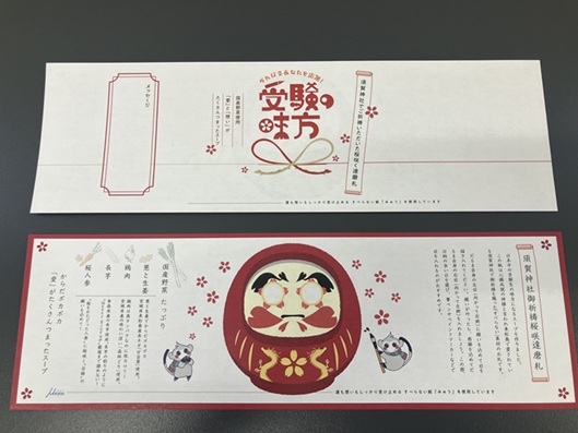 合格祈願のご祈祷を賜っており、スープとともに受験生を応援する心強いアイテムとなっています。